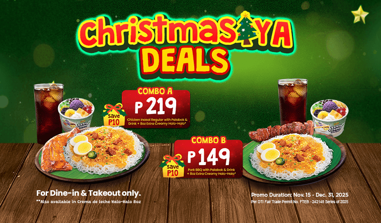 For every order of Mang Inasal Solo Fiesta Chicken Inasal with Extra Creamy Halo-Halo 8oz., customers get a FREE Small Coke. This promo is exclusively available via dine-in and takeout from January 20 to 26, 2025, in Iloilo City stores only.