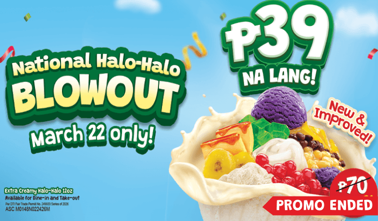 Get the Chicken Inasal or Pork BBQ meals with Unli-Rice, Unli-Soup, Unli-Chicken Oil, drinks, and Extra Creamy Halo-Halo 8oz. This is available for dine-in and takeout.